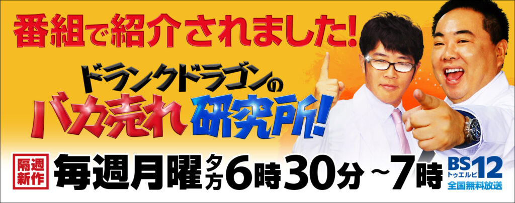 BS12「ドランクドラゴンのバカ売れ研究所!」に紹介されました!